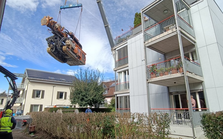 Die Stockwerkeigentümerschaft einer Siedlung in Uster entschied sich nach einer Impulsberatung von unserer Schwesterfirma Omneo AG, ihre zentrale Gasheizung durch ein Erdsonden-Wärmepumpensystem zu ersetzen. Die drei Mehrfamilienhäuser benötigen eine Heizlast von fast 100 kW, befinden sich in dicht besiedeltem Gebiet sind und ein Grossteil des Grundstücks mit einer Tiefgarage unterkellert. Die Omneo AG erstellte ein Ausführungskonzept und organisierte den Heizungsersatz als Totalunternehmung im schlüsselfertigen Sorglospaket.