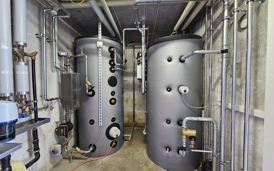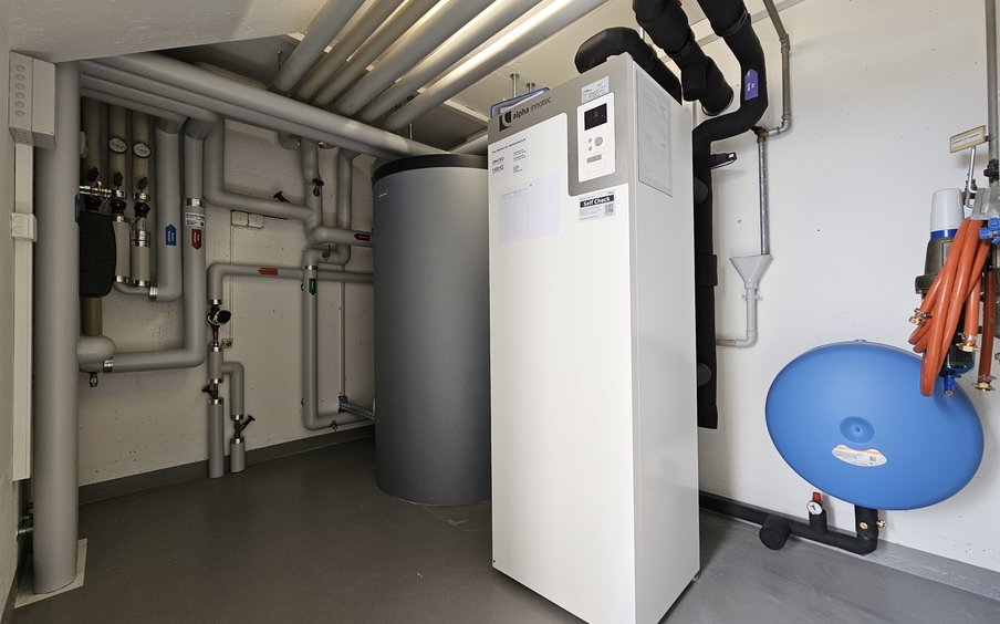 Für jedes der vier Mehrfamilienhäuser wurde eine eigene Wärmepumpe installiert, die optimal auf die jeweiligen Anforderungen abgestimmt ist. Die eingesetzten Wärmepumpen zeichnen sich durch ihre hohe Effizienz, einen grossen Modulationsbereich und einen leisen Betrieb aus. Die bestehenden Heizzentralen der Siedlung boten teilweise zu wenig Platz für die neuen Installationen, weshalb die alten Öltankräume umgerüstet wurden und nun auch als Technikzentralen dienen.